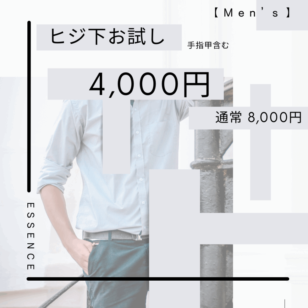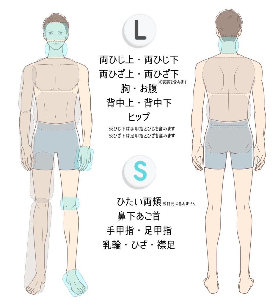 | 腕・脚 | ヒジ下、ワキ、手甲指、ヒザ下、足甲指を含みます。 | 15,000 yen | 84,000 yen | 156,000 yen |